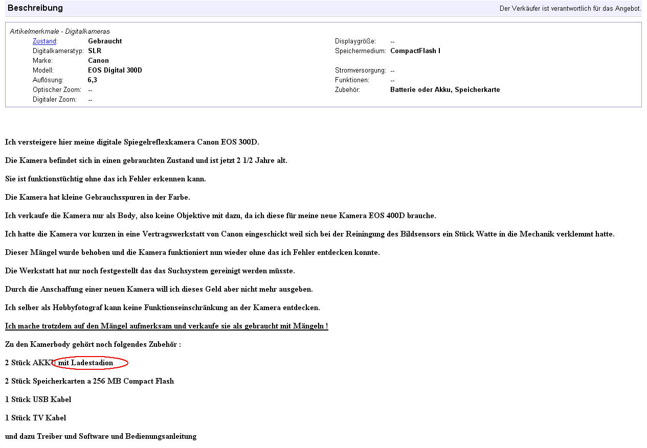 Dann begegnete mir bei Ebay noch ein Eintrag, der auch Beachtung verdiente. Da verkauft doch jemand neben seiner Kamera gleich noch ein Stadion mit. Nicht schlecht, da hat man dann gleich eine Location wo man tolle Fotos schießen kann. Stellt sich nur noch die Frage was in einem Ladestadion gespielt wird 😉