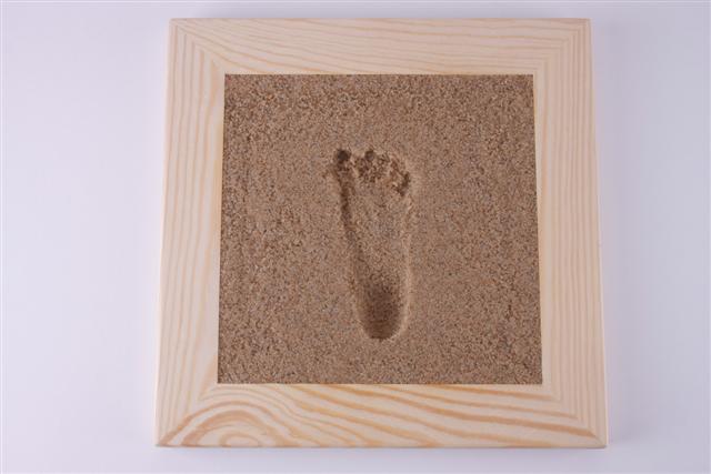 Laut Packung ist das ganz einfach. Den mitgelieferten Sand mit dem Kleber vermischen, das Ganze in den Holzrahmen geben, glattstreichen und den Hand- oder Fußabdruck (wahlweise natürlich beides) hinterlassen. Ganz einfach also, wenn…ja wenn da nicht dieser Greifreflex wäre. Nach einigen Versuchen mit der Hand haben wir uns dann entschieden es lieber mit dem Fuß zu versuchen. Jedoch ist war es auch damit nicht viel einfacher. Nach diversen Versuchen, ebenso vielen Aktionen den Sand wieder glatt zu streichen, haben wir es tatsächlich geschafft: Das Kinderzimmer glich einer Strandzone. Kein Schritt ohne knirschen unter den Füßen, ein gut paniertes Kind und zwei ebenso versandete Eltern. Aber wir haben einen Abdruck im Sand und der ist auch gar nicht so schlecht geworden wie wir finden.